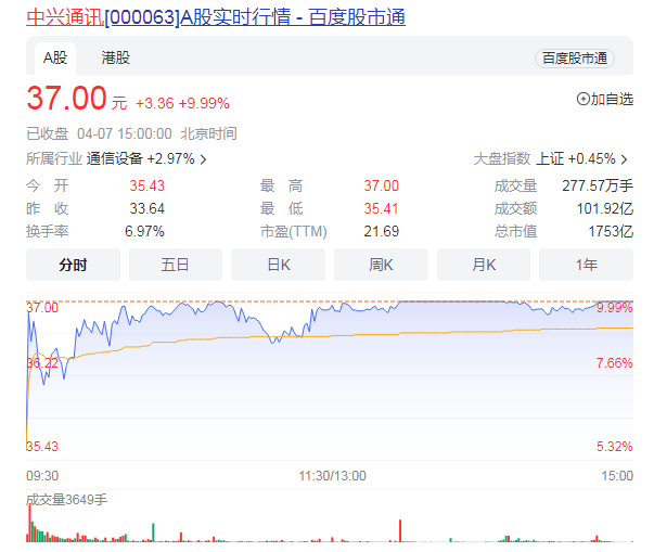 中兴通讯A股早盘触及涨停,消息面,公司称年底推出支持ChatGPT的GPU服务器。