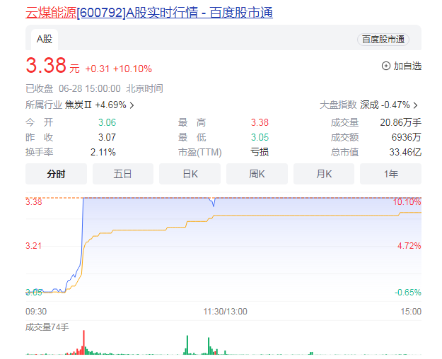 煤炭板块28日盘中强势拉升,截至发稿,云煤能源、陕西黑猫、郑州煤电等涨停,安源煤业、美锦能源涨超6%,山煤国际涨近5%。