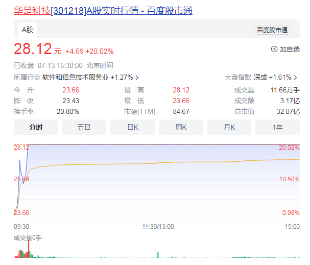 CPO概念13日盘中强势上扬,截至发稿,华是科技“20cm”涨停,博创科技、中际旭创涨超10%,新易盛涨约7%,天孚通信、锐捷网络、深科达、长电科技等涨超5%。