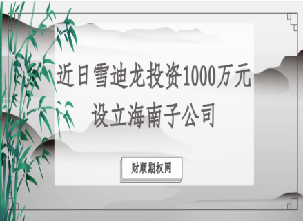 近日雪迪龙投资1000万元设立海南子公司
