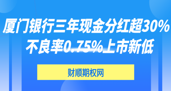 厦门银行三年现金分红超30% 不良率0.75%上市新低