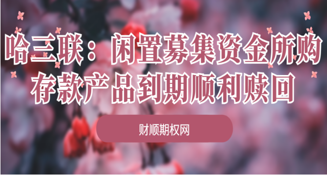哈三联:闲置募集资金所购存款产品到期顺利赎回