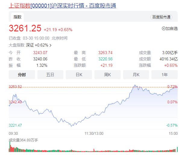 截至收盘,沪指涨0.65%报3261.25点,深成指涨0.62%报11651.83点,创业板指涨0.5%报2383.04点,上证50指数涨1.06%;两市合计成交9446亿元,北向资金净买入48.07亿元。