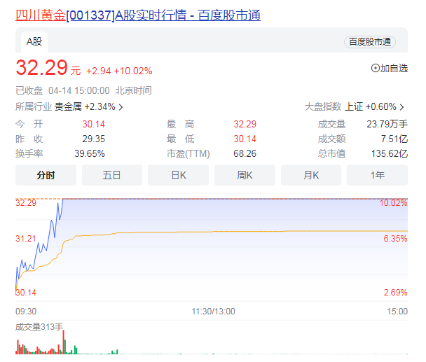 黄金概念14日盘中强势拉升,截至发稿,四川黄金涨停,鹏欣资源逼近涨停,晓程科技涨超8%,中润资源、恒邦股份涨超5%,西部黄金、山东黄金、中金黄金等涨超3%。