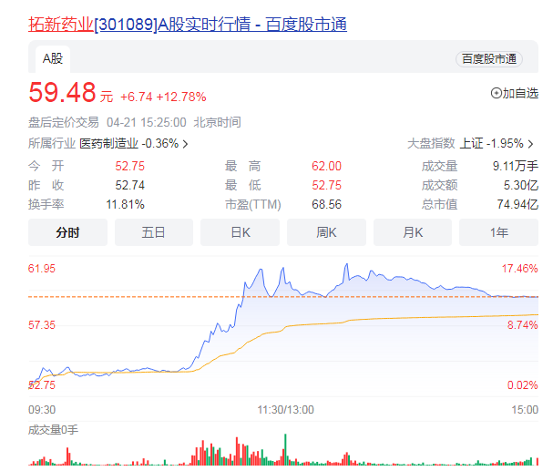 新冠药概念21日盘中发力拉升,截至发稿,拓新药业涨超15%,亨迪药业涨超12%,华润双鹤涨停,众生药业涨近9%,新华制药涨超8%,上海凯宝、贵州三力、舒泰神等涨超6%。