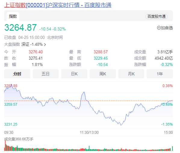 4月25日,沪指盘中震荡下探,盘中一度跌超1%,尾盘跌幅有所收窄;深成指、创业板指大幅下挫,上证50指数尾盘翻红;两市成交额较昨日有所放大,且已连续16个交易日突破万亿,北向资金净卖出近50亿元。