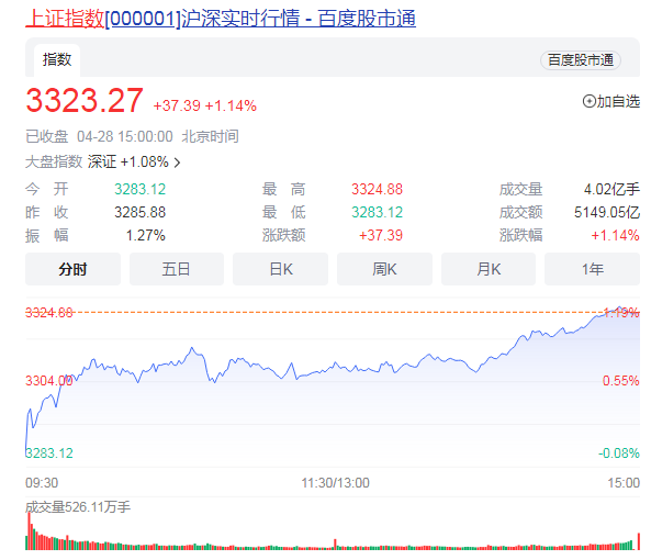 4月28日,两市股指盘中全线走高,沪指午后涨超1%,科创50指数涨近2%;两市成交额已连续19个交易日突破万亿,北向资金净买入约16亿元。