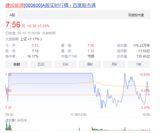 5月15日,A股市场中的电力行业表现较为活跃,建投能源涨停,川能动力、粤电力A、赣能股份、闽东电力、陕西能源等纷纷上涨。今年,“中特估”带动电力板块频频上涨,叠加夏季临近用电旺季将至,各地用电需求有望持续增长,电力板块景气度或持续提升。