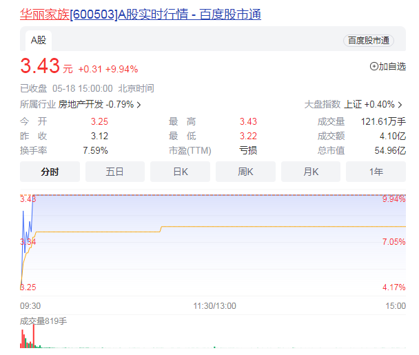 继16日涨停后,华丽家族18日盘中快速拉升再度封涨停,截至发稿,该股报3.43元,涨停板上封单达38万手。