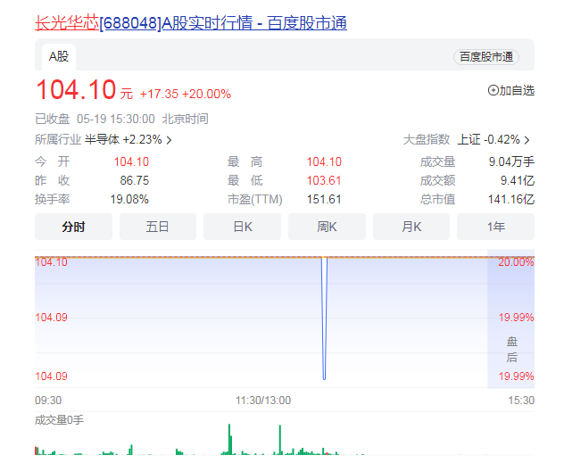 今日(5月19日)早盘,芯片概念相关板块集体爆发,其中,存储芯片、MCU芯片、汽车芯片等细分板块涨幅居前。具体个股方面,截止午间收盘,长光华芯、恒烁股份双双20cm涨停,德明利、科瑞技术、大为股份也封板涨停,同时,智立方、全志科技、朗科科技等多股涨幅超10%,此外,今日上市的芯片新股N飞测大涨186%。