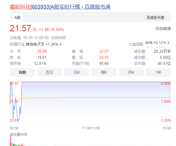 5月中旬以来,存储器板块连续大涨;今日早盘再度冲高,板块指数较本月低点已累计上涨16.45%。板块中,睿能科技实现6连涨停板,恒烁股份、德明利涨停,朗科科技、同有科技涨幅在10%以上,深科技、万润科技、佰维存储、江波龙涨超5%。