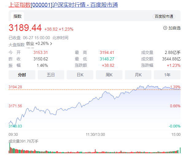 值得关注的是,此前沪指连续4日下跌,在6月26日以3144.25点刷新了1月9日以来的新低。就在同日,著名媒体人胡锡进发文称开户入市,并称“明天上午开始买股票,我会边炒股边学习,力争少交学费。我真的不想成为‘韭菜’”。沪指在27日迎来了1%以上的涨幅,为一个多月的最大单日涨幅。网民戏称“胡锡进第一天觉得炒股不难”。