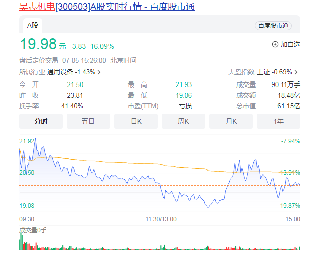 机器人概念5日盘中回落走低,截至发稿,昊志机电跌超13%,盘中一度逼近跌停;南方精工跌停,德恩精工跌约9%,优德精密、爱仕达跌超7%,联诚精密、兆威机电、科力尔、通达动力等跌约6%。