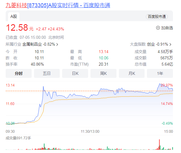 今日早盘,金属板块持续走高,九菱科技一度涨近30%,光智科技20CM涨停,云南锗业、罗平锌电、华锋股份、中金岭南、豪美新材、丰华股份等多股涨停。