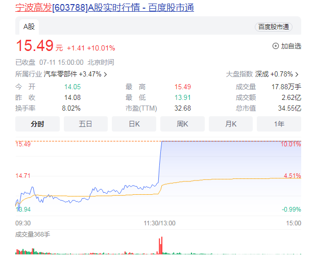 7月11日消息,多家中报预增股大幅高开,苏常柴A、凌云股份双双封住一字涨停,英特集团、燕塘乳业、仙坛股份高开超7%。