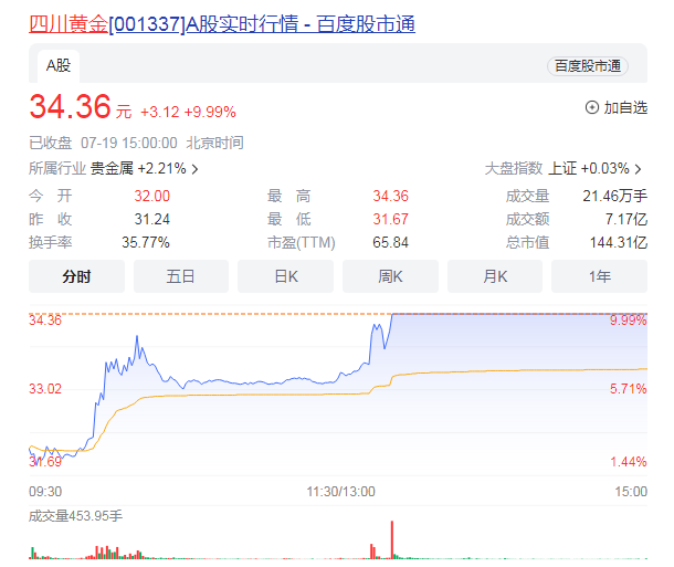 黄金概念股19日盘中发力拉升,截至发稿,四川黄金涨停,中润资源、曼卡龙涨超7%,晓程科技涨超5%,金贵银业、老凤祥、中金岭南等涨约4%。