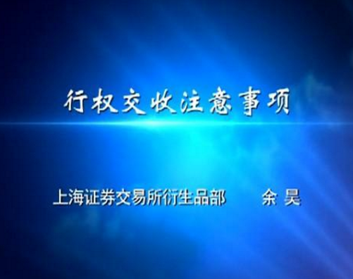 本集主要介绍行权交收注意事项的期权视频教学,了解行权交收注意事项,行权交收,投资者应该如何行权,行权需要注意的问题。...